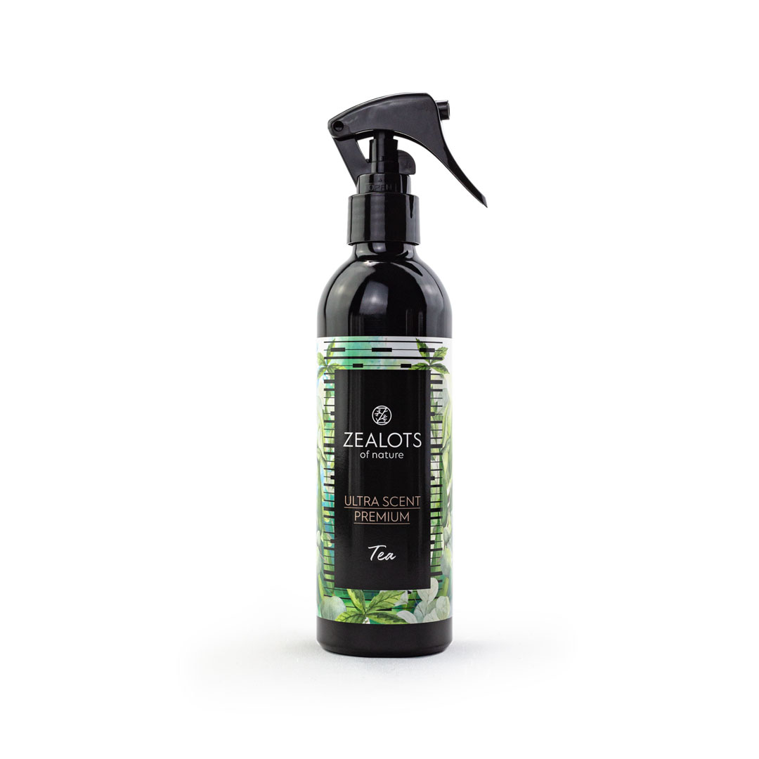 Ultra scent -room spray with green tea and cotton perfume. Liquid air freshener with lasting fragranse. Eliminates any kind of undesirable odor by releasing at the same time a pleasant scent of freshness.